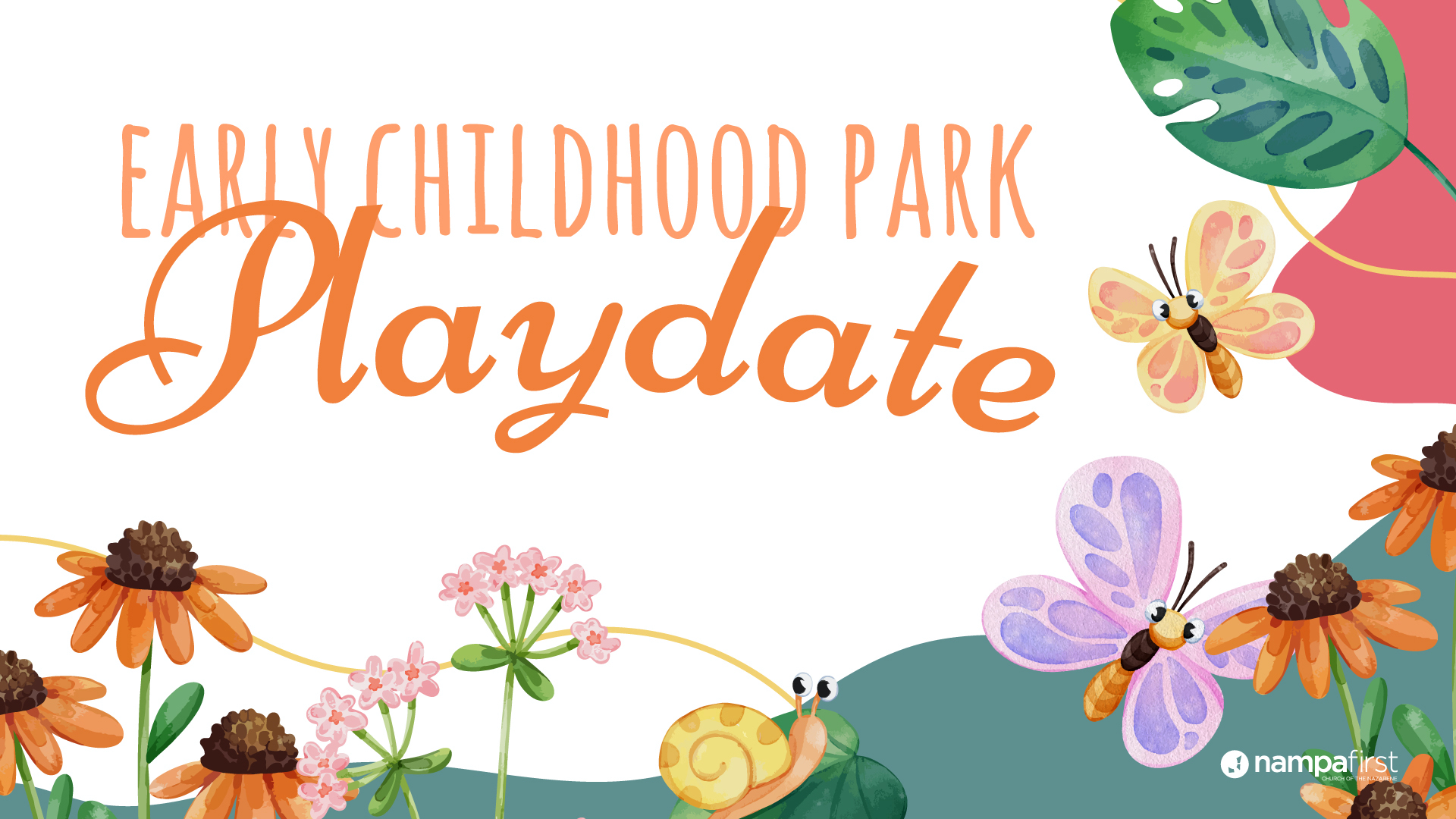 Next Thursday, August 3rd, we'll meet at 10am for our final park playdate of the summer. Don't forget your water, snacks, lawn chairs, and a shade canopy if possible. For more information, you can contact Pastor Jean at jthomas@nampafirst.org.